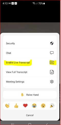 - Enable Transcription Options- Note- this may take several “taps” or a longer hold to activate