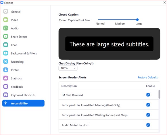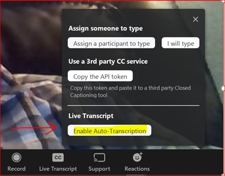 The Zoom Meeting Pro version offers a little-known feature to enable Closed Captions through its built-in “live transcription.”